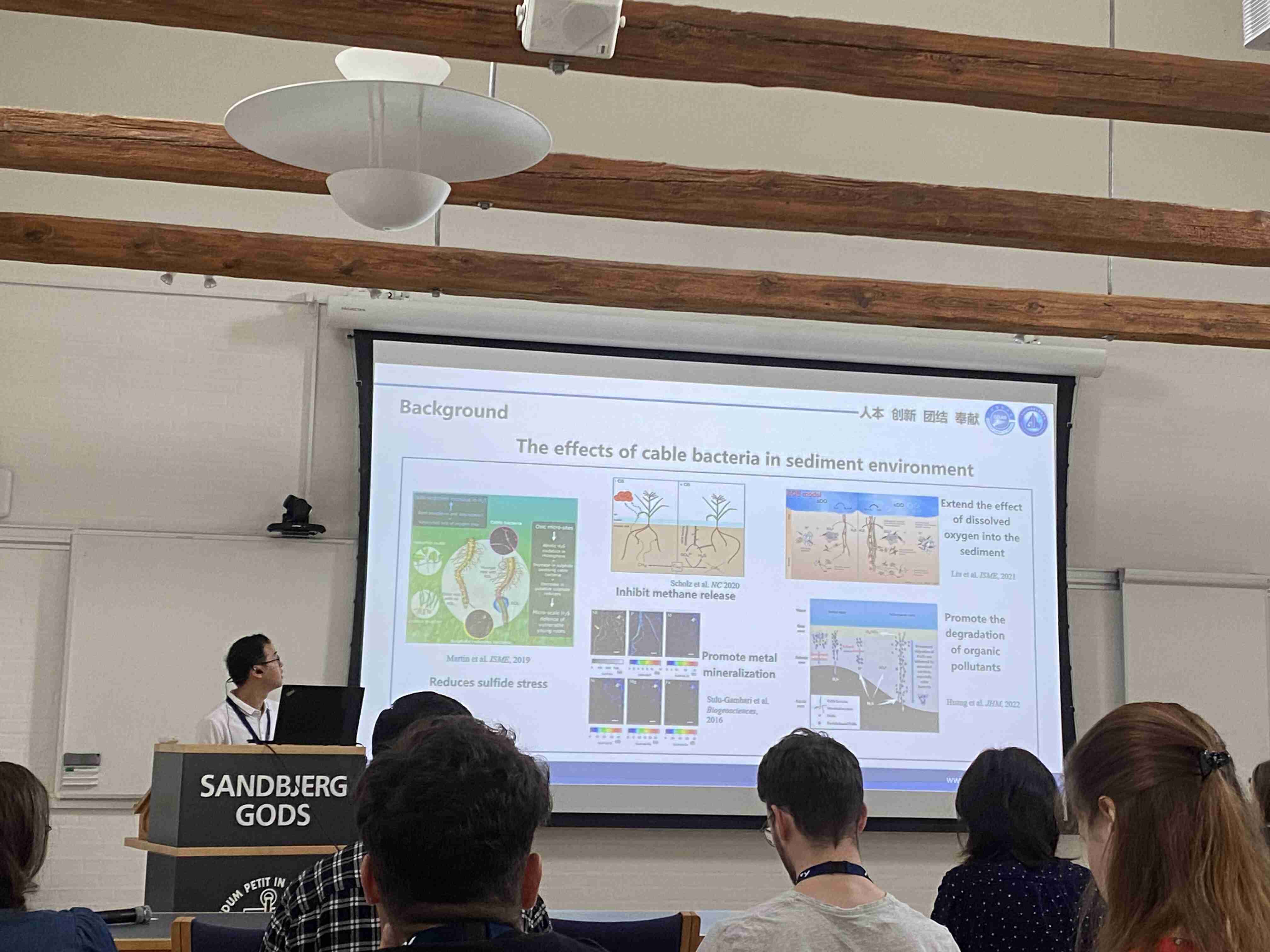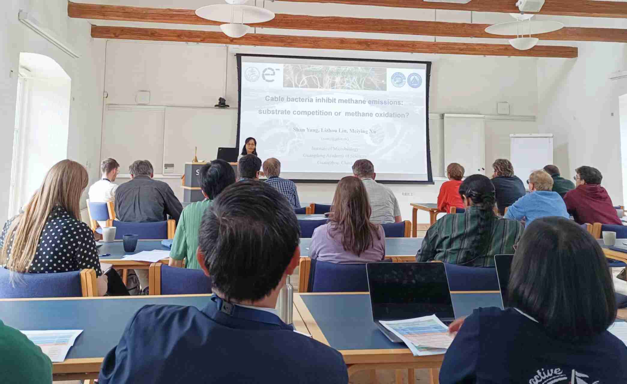 6月3日至6日,代表团应邀出席了第七届电缆细菌国际学术研讨会。许玫英和博士邓通初分别作题为“Cable bacteria inhibit methane emissions: substrate competition or methane oxidation ? ”和“Disentangling carbon metabolic mechanism of cable bacteria using highly controlled synthetic sediment systems”的专题报告,获得了与会人员的高度评价。代表团其他成员也以展报形式向国际同行展示了近年来有关电缆细菌的研究进展,并与国际同行进行深入地交流和讨论。