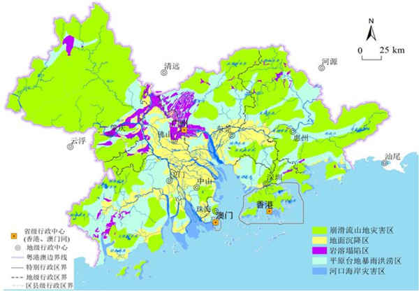 图 1 粤港澳大湾自然灾害易发区分布图