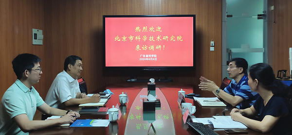 8月6日,北京市科学技术研究院调研组到访广东省科学院,调研科技成果转化工作。省科学院副院长周舟宇参加座谈交流。