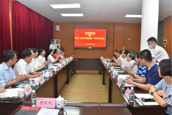 9月18日下午,阳江市委副书记、市长温湛滨,副市长冯松柏一行到访省科学院,与省科学院党委书记、院长廖兵就加强院地合作,共同推动区域产业创新发展的问题展开了深入交流。省科学院党委副书记颜国荣,党委委员、副院长李定强、周舟宇,广科控股董事长柳建尧等出席座谈会。